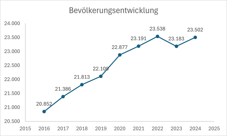 Die Einwohnerzahl in Kaltenkirchen ist zwischen 2016 und 2024 um rund 12,7 Prozent gestiegen. Dieses Wachstum ist für eine Stadt dieser Größe bemerkenswert und zeigt, dass Kaltenkirchen klar zu den expandierenden Standorten im Hamburger Umland gehört.