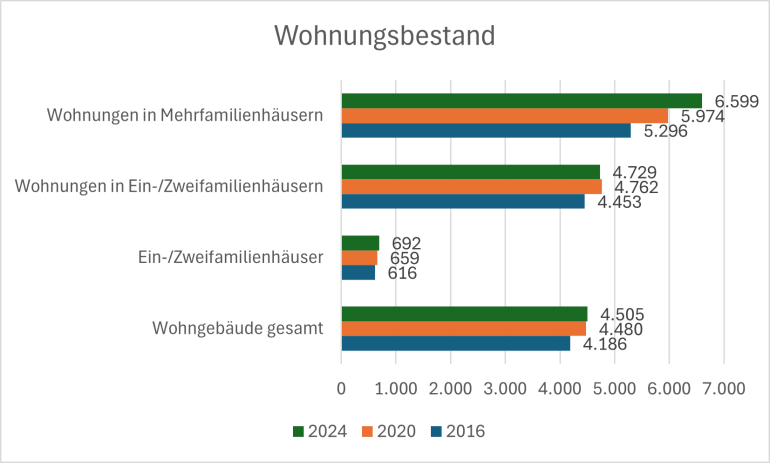 In den vergangenen Jahren ist der Wohnungsbestand in Kaltenkirchen zwar gewachsen, allerdings nicht gleichmäßig über alle Wohnformen hinweg. Während Ein- und Zweifamilienhäuser weiterhin einen wichtigen Bestandteil des Stadtbildes darstellen und moderat zugenommen haben, liegt der Schwerpunkt des Wachstums klar im Bereich der Mehrfamilienhäuser. Die Zahl der Wohnungen in Geschossbauten ist deutlich stärker gestiegen als die Anzahl klassischer Wohnhäuser.
